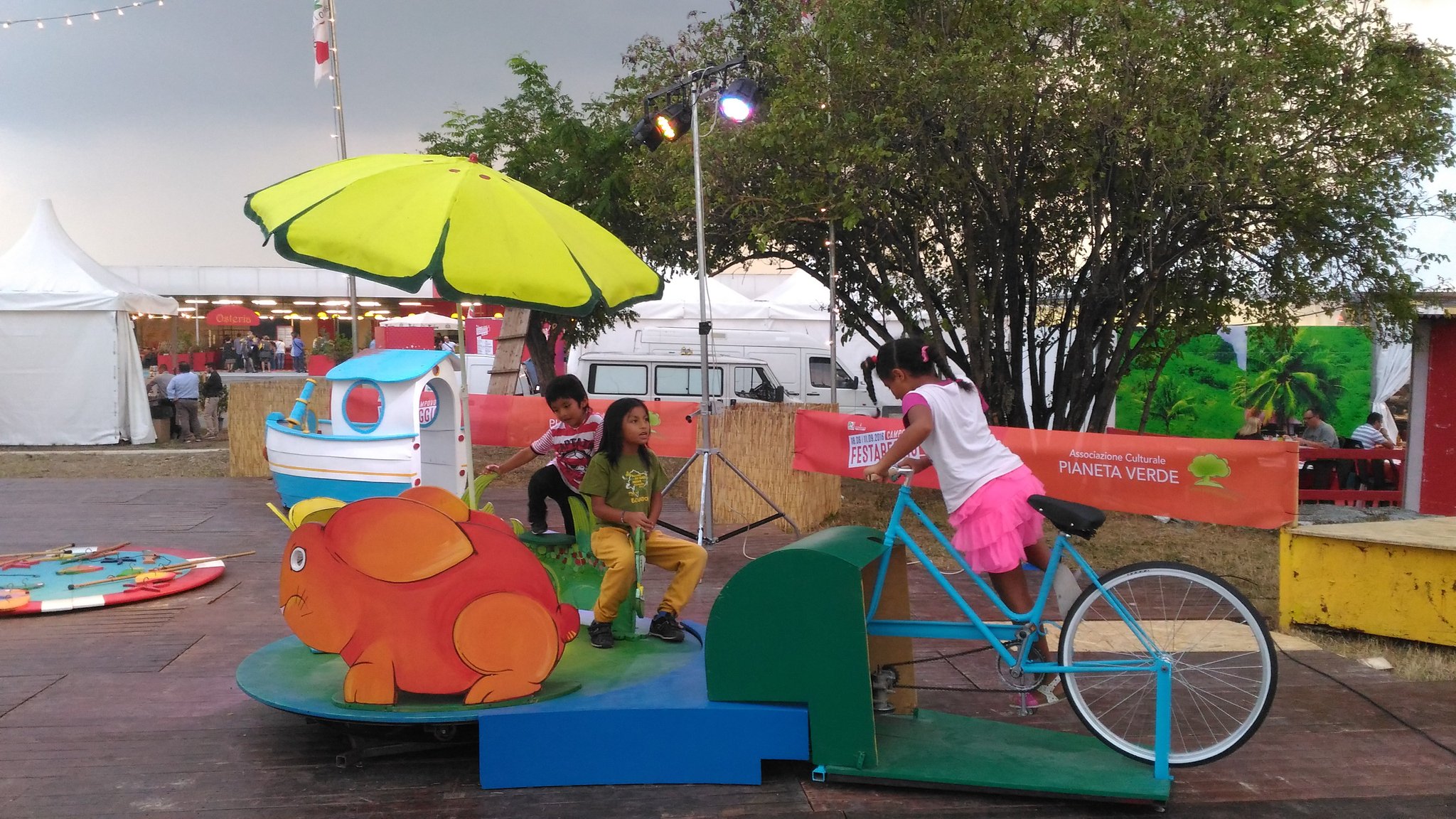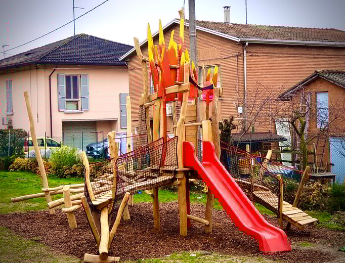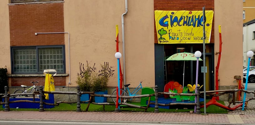 Questo è il parco giochi Pianeta Verde, un luogo ideale dove passare un pomeriggio od una sera con i figli e gli amici; non è simile a niente di già realizzato ed è a PARMA