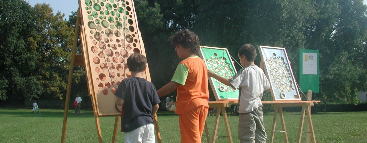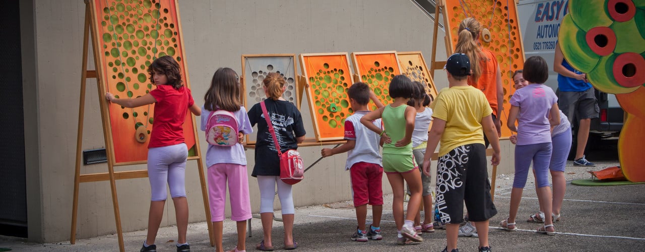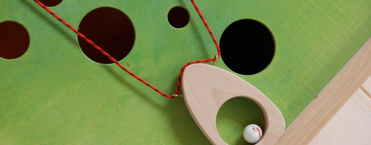 Metti la pallina nell'anello e manovra le due corde per far arrivare la biglia in cima, ma ttento a non farla cadere nei buchi sul percorso.
